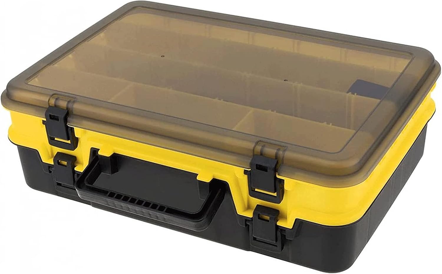 LIOONS Boîte à outils plastique transparente – double face – grande mallette avec poignée