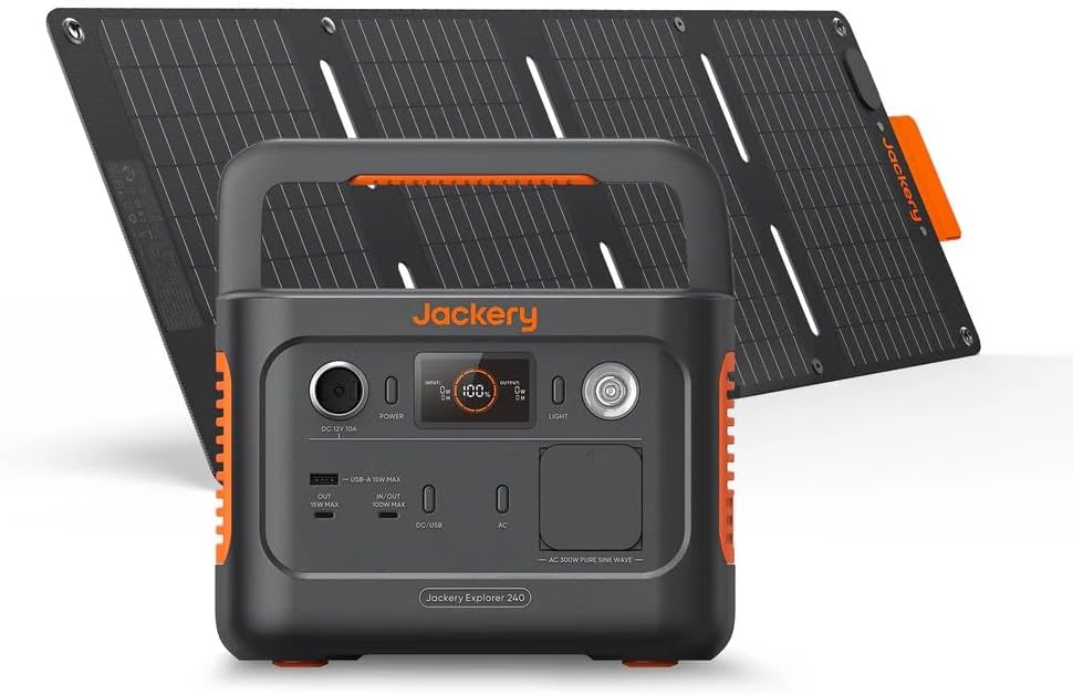 Station électrique portable Jackery Explorer 240 v2 256Wh – orange – générateur solaire compact 300W avec panneau