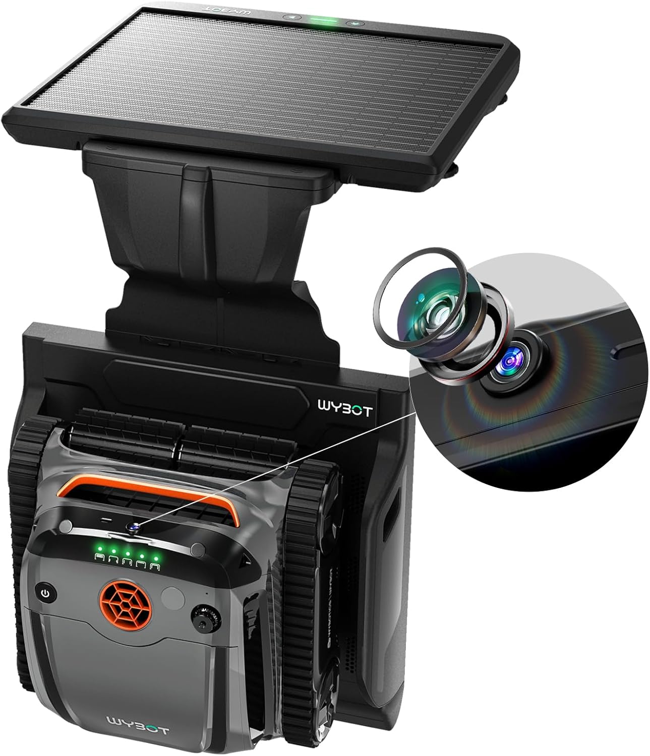 Robot piscine WYBOT S2 Solar Vision – gris orange – robot piscine sans fil solaire caméra IA nettoyage intelligent